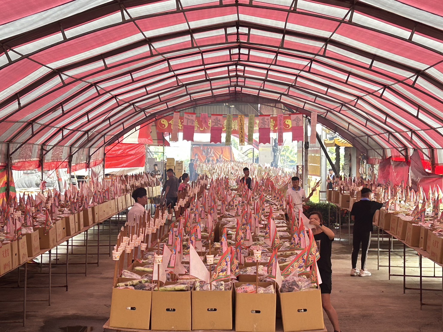 113年 中元節普渡 2024-08-11 甲辰年烏日天靈宮正一道觀慶讚中元,普渡法會拔薦鐵罐施食慈悲圓滿,感謝十方大德同心協力供品將捐贈獨居老人愛心協會及需要的人感謝各位十方福在福生無量慈悲供品820桌